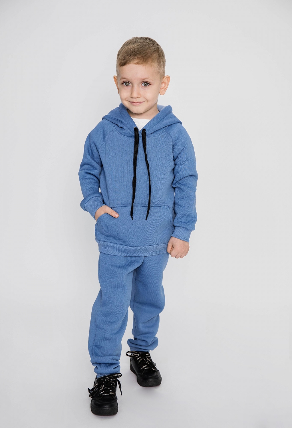 Купить оптом 296-ДЖ. Свитшот с капюшоном + Штаны, хлопок 65%, 35% ПЭ, 3-х нитка (начес) джинсовый 122,128,134,140 в Кирове