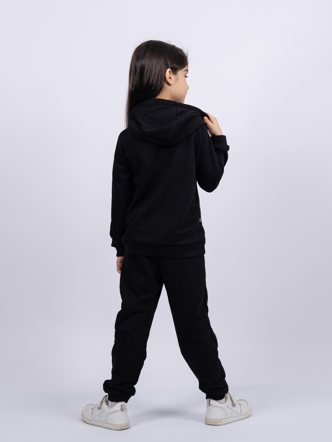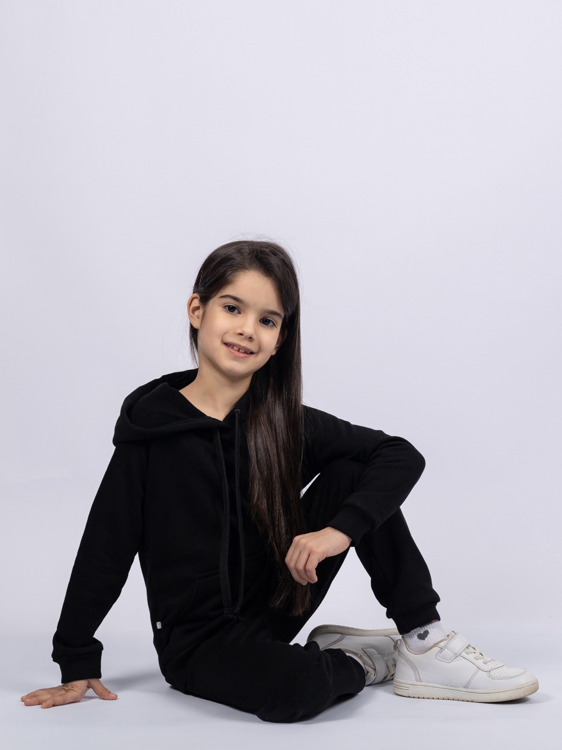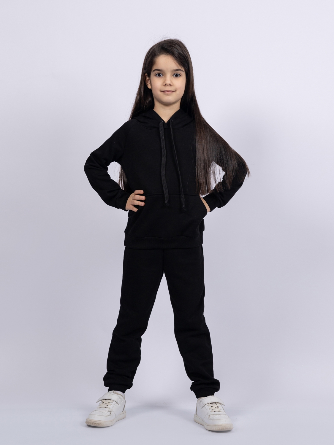 Купить оптом 311-Ч. Свитшот с капюшоном + Штаны, хлопок 65%, 35% ПЭ, 3-х нитка ( без начеса) черный 122,128,134,140 в Кирове