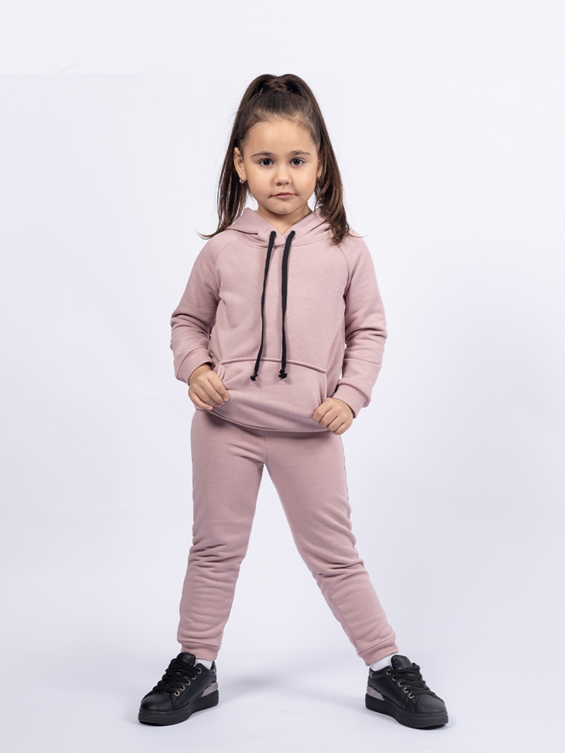 Купить оптом 311-ПУ. Свитшот с капюшоном + Штаны, хлопок 65%, 35% ПЭ, 3-х нитка ( без начеса) пудра 122,128,134,140 в Кирове