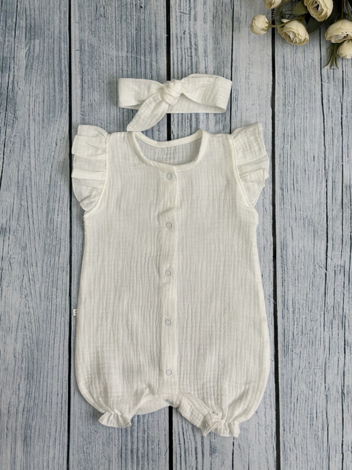 341-МО. Песочник с повязкой для девочки из муслина, хлопок 100%, р 62,68,74,80 молочный